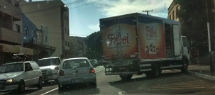 O tamanho do caminhão está certo. Pode no centro, no caso, a rua Roberto Brzezinski, entre as avenidas Irmãos Pereira e Capitão Índio Bandeira. O problema é o horário, que não é mais de carga e descarga, e essa forma de estacionar, que fecha metade da rua. Isso não pode.