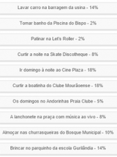 14% para lavar o carro na barragem da usina e 14% para brincar no parquinho na escola Gurilândia.