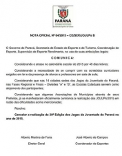 Os Jogos da Juventude do Paraná não serão realizados este ano.