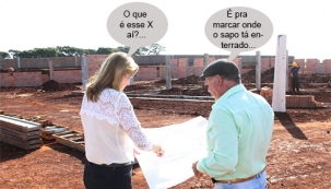 O clic é do conjunto Avelino Piacentini, que vai ganhar uma escola com seis salas de aula. O investimento é de R$ 1 milhão, sendo R$ 107 mil de contrapartida da prefeitura e o resto do governo federal. A prefeita Regina Dubay foi dar uma conferida na obra. Ela lembrou que o bairro também vai ganhar uma Super Creche. E que fique claro: o "sapo enterrado" é só por conta do bom humor deste Site...