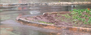 O que tá fazendo aí? Tá detonando a cidade. Olha o estrago que os bitrens deixaram ao passarem pelo centrão de Campo Mourão. Toda vez é assim. Como o centro não é lugar de carretas, elas não conseguem fazer as curvas e vão passando por cima de calçadas e canteiros. Ah, depois o contribuinte paga o conserto...