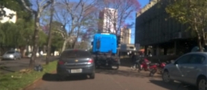 “Caminhão (cavalo mecânico) para em fila dupla na av. José Custódio de Oliveira. Em frente ao fórum! O flagra é de sexta-feira, por volta do meio dia”.