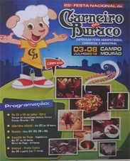 ...para o prato típico de Campo Mourão ser servido na 25ª Festa Nacional do Carneiro no Buraco. O cartaz de hoje é da 22ª edição do evento, realizada de 3 a 8 de julho de 2012. Foi a última festa sob o comando do prefeito Nelson Tureck. Mais uma vez, a divulgação citava shows, mas sem destacar nomes de artistas.