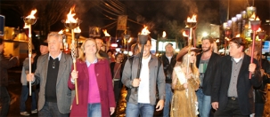 A prefeitura já tinha até desistido do “ritual do fogo”, mas a chuva deu uma trégua e acabou sendo feito um cortejo improvisado.