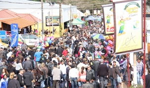 Regina Dubay (PR), prefeita de Campo Mourão, aliviada com a trégua que a chuva deu depois das 11h deste domingo, quando começou a ser servido o prato típico na 25ª Festa Nacional do Carneiro no Buraco.