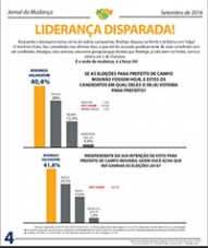 No programa eleitoral da TV desta terça-feira, Rodrigo Salvadori divulgou pesquisa em que lidera as intenções de voto.