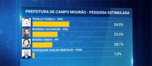Tauillo Tezelli aparece em primeiro, com 34,5% das intenções de voto.