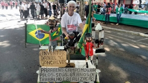 O desfile de 10 de Outubro pode ter sido rapidinho (durou 15 minutos), com pouca gente desfilando e pouca gente assistindo, mas o seu Daniel Gonçalves estava lá com usa bicicleta toda enfeitada. Aos 77 anos, ele não deixa de participar. Vai ao 7 de Setembro e vai ao 10 de Outubro. Todo ano. “Parabéns, Campo Mourão pelos seus 69 anos de trabalho e realização”, destacava a placa colocada na frente da bike.