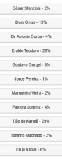 Venceu Tião do Karatê, com 29% dos votos, seguido de pertinho por Eraldo Teodoro, com 28%.