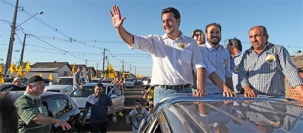 O secretário de Estado Ratinho Jr (Desenvolvimento Urbano) voltou a Campo Mourão nesta sexta-feira. De novo participou de carreata do candidato a prefeito Rodrigo Salvadori (PSD). Olha eles aí, junto com o candidato a vice-prefeito Isidoro Moraes (PP). Foi a segunda participação de Ratinho Jr em carreata de Salvadori.