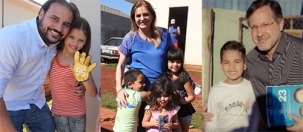 ...Tirar fotos abraçado mesmo com quem não tem idade para votar nas eleições. Da esquerda para direita: Rodrigo Salvadori (PSD), Regina Dubay (PPS) e Tauillo Tezelli (PPS), prefeitáveis em Campo Mourão.