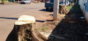Ela voltou, a serra elétrica voltou novamente. Desta vez passou pela rua Devete de Paula Xavier e derrubou três árvores na esquina com a av. Goioerê.