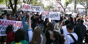 Um grupo de manifestantes encerrou o defile em Campo Mourão aos gritos de “Fora Temer!” e “Fora Beto Richa”. Também levaram faixas com essas palavras de ordem. Não faltaram ainda faixas chamando Márcio Nunes de “deputado do camburão” e “traidor do povo”. Além disso, reapareceu o cartaz que chama Márcio e Douglas Fabrício de “inimigos da educação”.