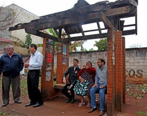 Foto postada no Facebook mostra o candidato a prefeito Rodrigo Salvadori (PSD) e o candidato a vereador João Marcos (PSB) num ponto de ônibus no Lar Paraná. Onde está o erro?
