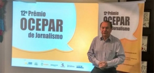 Aconteceu nesta segunda-feira, em Campo Mourão, o lançamento do 12º Prêmio Ocepar de Jornalismo. Desta vez a premiação soma R$ 88 mil. Há prêmio para jornalismo impresso, telejornalismo, radiojornalismo, mídia cooperativa, prêmio especial banco de crédito e prêmio especial saúde. O presidente da Coamo, José Aroldo Gallassini, falou a respeito. Representantes da Unimed e do Sicredi também participaram, além da Ocepar, é claro.