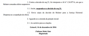 A juíza Fabiana Matie Sato, de Goioerê, recebeu a decisão do tribunal nesta sexta e comunicou a Justiça Eleitoral.