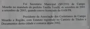 Ao apresentar seus futuros secretários, o prefeito eleito Tauillo Tezelli mostra o currículo de cada um. Agora olha só o que o advogado Cristiano Calixto, que assumirá a Fiscalização, colocou no histórico dele: presidente da Associação dos Corintianos de Campo Mourão e Região. E desde a fundação, em 2002. Quem conhece o Calixto sabe que ele não deixaria isso de fora de jeito nenhum. No mais, cá pra nós: se o prefeito eleito, que é palmeirense, não liga...