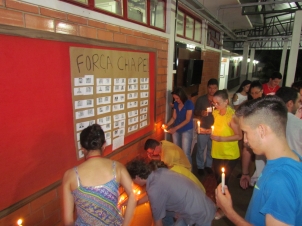 Alunos, professores e funcionários da faculdade Unicampo fizerem homenagens às vítimas da queda do avião da Chapecoense. A iniciativa partiu de alunos do curso de serviço social. Houve orações, um minuto de silêncio e o acendimento de 71 velas. O avião que levava o time para a decisão da Copa Sul-Americana caiu semana passada na Colômbia. Morreram 71 pessoas, entre jogadores, comissão técnica, dirigentes, jornalistas e tripulação.