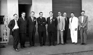 5 de dezembro de 1955. Posse do prefeito Roberto Brzezinski e vereadores eleitos em 4 de outubro. Na foto, eles estão em frente ao Cine Império, onde funcionava, em uma das salas do 2º andar, a Câmara Municipal. Brzezinski sucedeu Daniel Portela, que participou da transmissão de cargo.