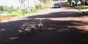 Quatro gansos resolveram passear na rua São José. Possivelmente estavam conhecendo os novos vizinhos do Cidade Alta 2”. Rafael Silvestrin