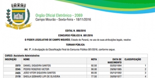 Foi divulgado nesta sexta-feira o resultado do concurso público da Câmara de Campo Mourão.