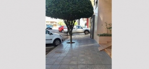 “O flagra feito na rua Santa Catarina, área central de Campo Mourão, é só uma mostra de uma cena comum na cidade. Carros param atravessados sobre a calçada, atrapalhado a vida do pedestres”.