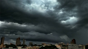 Vista de Campo Mourão, às 14h30 desta sexta-feira. Segundo o Simpear, haverá apenas “pancadas de chuvas isoladas” à tarde e à noite. O mesmo está previsto para sábado. No domingo a previsão é de tempo parcialmente nublado com chuvas e trovoadas, o que se repete na segunda e terça-feira. Temperaturas devem variar de 19 a 32 graus.