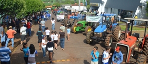 Agricultores levaram tratores em frente ao banco e o comércio fechou as portas das 9h às 12h.