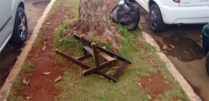 Quebrou a cadeira de casa ou do escritório e não sabe o que fazer com ela? Seus problemas acabaram! É só jogar os restos pelos canteiros centrais de Campo Mourão. Essa cadeira aí foi deixada no canteriro da av. Irmãos Pereira, no centrão da cidade.
