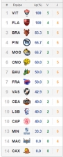 Campo Mourão tem a sexta melhor campanha, com 60% de aproveitamento (três vitórias e duas derrotas).