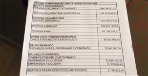 O resumo da situação financeira divulgado pela ex-prefeita Regina Dubay fala em dívidas vencidas de R$ 20,6 milhões.
