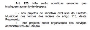 Tudo previsto no regimento, menos um porenzinho: não é permitido emenda que aumente despesas na organização legislativa.