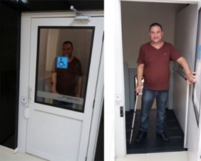 O vereador Tucano está andando de muleta. Resultado de uma cirurgia que fez num dos joelhos. Com a Câmara tem escadarias, o jeito é usar o elevador para portadores de necessidades especiais. A “estreia” do vereador no equipamemto foi registrada pelo colega Edilson Martins.