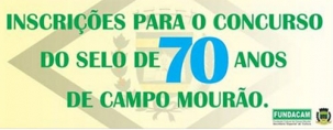 Saiu o edital do concurso que vai escolher o selo dos 70 anos de Campo Mourão. As inscrições são gratuitas e podem ser feitas até o próximo dia 14. O edital tem todas as regras e a ficha de inscrição. A divulgação do vencedor deve sair até 20 de abril. Quem fizer o selo escolhido vai ganhar uma estadia para casal no hotel-fazenda Termas de Jurema.