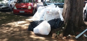 Lote de isopor é deixado sobre a calçada na rua Harrison José Borges, fundos da Catedral São José. Com certeza não foi o padre que fez isso, né?...