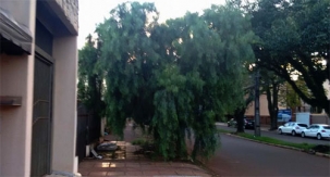 Numa cidade que já teve orgulho de suas ruas arborizadas, mas hoje em dia alguns têm raiva disso, é até perigoso falar de árvore e já aparecer uma moto-serra. Agora, cá pra nós: tem espécie que não foi feita pra ser usada em calçada. Pode ser bonito, mas não é nada funcional. Essa aí, que obriga os pedestres a transitarem pela rua, fica na av. Goioerê.