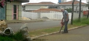 “Na av. Goioerê, próximo ao supermercado Carreira, morador corta por conta própria a grama do canteiro central. A foto foi tirada no início da tarde deste domingo”.