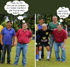 Os cliques são deste domingo pela manhã, no distrito de Piquirivaí, onde um time de ex-profisionais participou do jogo que “inaugurou” o novo nome do estádio local. Entre os craques, o meia Ricartinho, ex-Corinthians, Santos, São Paulo e Seleção Brasileira (foi penta em 2002). Na hora da foto oficial o prefeito Tauillo Tezelli fez pose ao lado do craque. Os vereadores Sidnei Jardim e Edson Battilani e o secretário de Estado Douglas Fabrício também estiveram por lá.