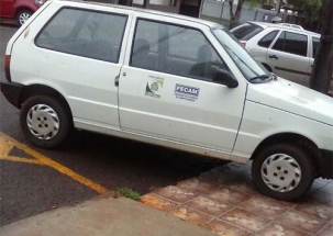 A foto é desta quarta-feira pela manhã, na rua Guarapuava, entre as avenidas Capitão Índio Bandeira e Manoel Mendes de Camargo. Carro não pode estacionar assim, sobre a calçada. Ainda bem se tiver adesivo na porta que identifique de onde é...