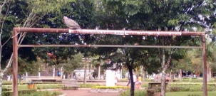 Não tem mais propaganda no painel instalado na praça Getúlio Vargas. Restou apenas o suporte, que agora é usado como ponto de descanso pelos pombos que frequentam o local.