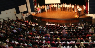 O prefeito Tauillo Tezelli participou nesta quinta-feira, no Teatro Municipal, da abertura do ano letivo da rede municipal.