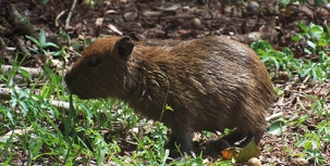“Foto feita no Parque do Lago, em Campo Mourão, mostra filhote de capivara pastando tranquilamente”. Altair José dos Santos