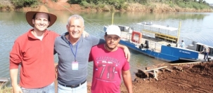 O vice-prefeito de Curitiba, Eduardo Slaviero Pimentel (de chapeu), acompanhou a chegada da balsa ao rio Piquiri.