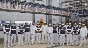 Os frangos estão passando por cima, mas o prefeito de Ubiratã, Baco Duarte, está sim nesta foto. Não só ele, como seis vereadores. O grupo foi conhecer a ampliação da Unitá, o abatedouro de aves da cidade. Hoje a unidade abate 230 mil frangos por dia, mas chegará a 380 mil quando a ampliação estiver a todo vapor, em 2020.