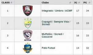 Foi a 34 pontos após vencer o Foz, neste domingo, por 4 a 0.