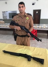 Em Goioerê, a Polícia Militar chamou a imprensa para apresentar duas armas doadas por empresários da cidade. São duas espingardas calibre 12. A doação foi feita ano passado, mas a burocracia fez com que as armas só chegassem agora à 2ª Cia da PM. A polícia também vai receber uma camionetona Hilux doada pelo Sindicato Rural de Goioerê.