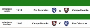 Campo Mourão jogará dias 28 de setembro e 6 de outubro.