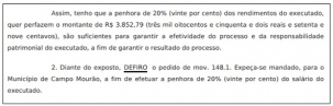 Uma liminar mandou penhorar 20% do salário do prefeito de Campo Mourão, Tauillo Tezelli.