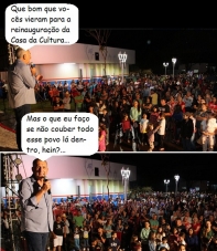 Os cliques são da última quinta-feira, quando a prefeitura de Campina da Lagoa reinaugurou a Casa da Cultura. Segundo o prefeito Milton Luiz Alves o investimento foi de R$ 600 mil, tudo recurso próprio. A Casa da Cultura estava fechada havia 14 anos (por sete foi emprestada à Câmara). A reabertura teve show com Juca Bala e auditório lotado.