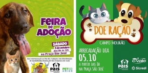 1) Acontece sábado (8h), na praça São José, evento em prol dos animais. Haverá feirinha de adoção, distribuição de medalhinhas bentas de São Francisco e arrecadação de ração em parceria com o Sicredi.